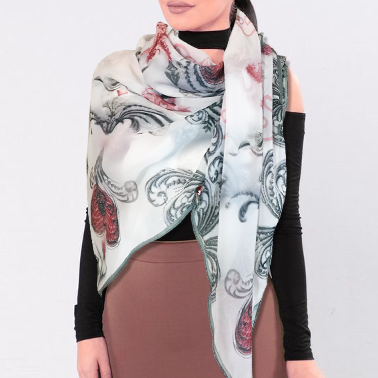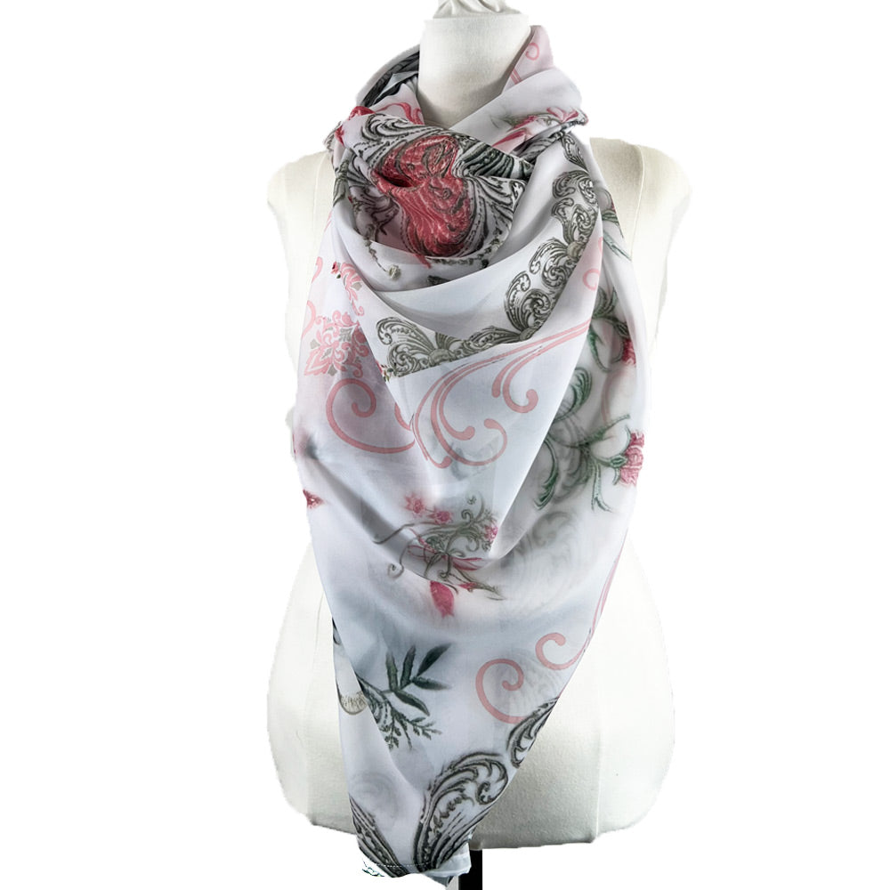 Our Luxury Designer Chiffon Scarves are specially produced by partnering with an exclusive fabric printing house which offers top grade, quality textiles with custom, eco-friendly design printing matched by no other.
